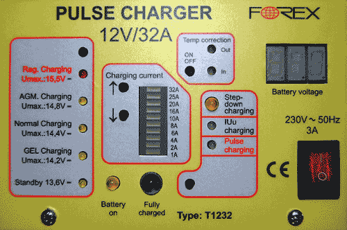 A T1232 töltő egyedülálló újítása, hogy töltés közben nem a töltőfeszültség ingadozik, hanem néhány ezredmásodpercig megfordul a töltésáramlás iránya és az akkumulátoron egy rövid kisütést hajt végre. Ez az intenzív töltésáramlás változás eredményesen bontja a lemezeken kialakult szulfátréteget és ezáltal csökkenti az akku öregedését és növeli a kapacitást.